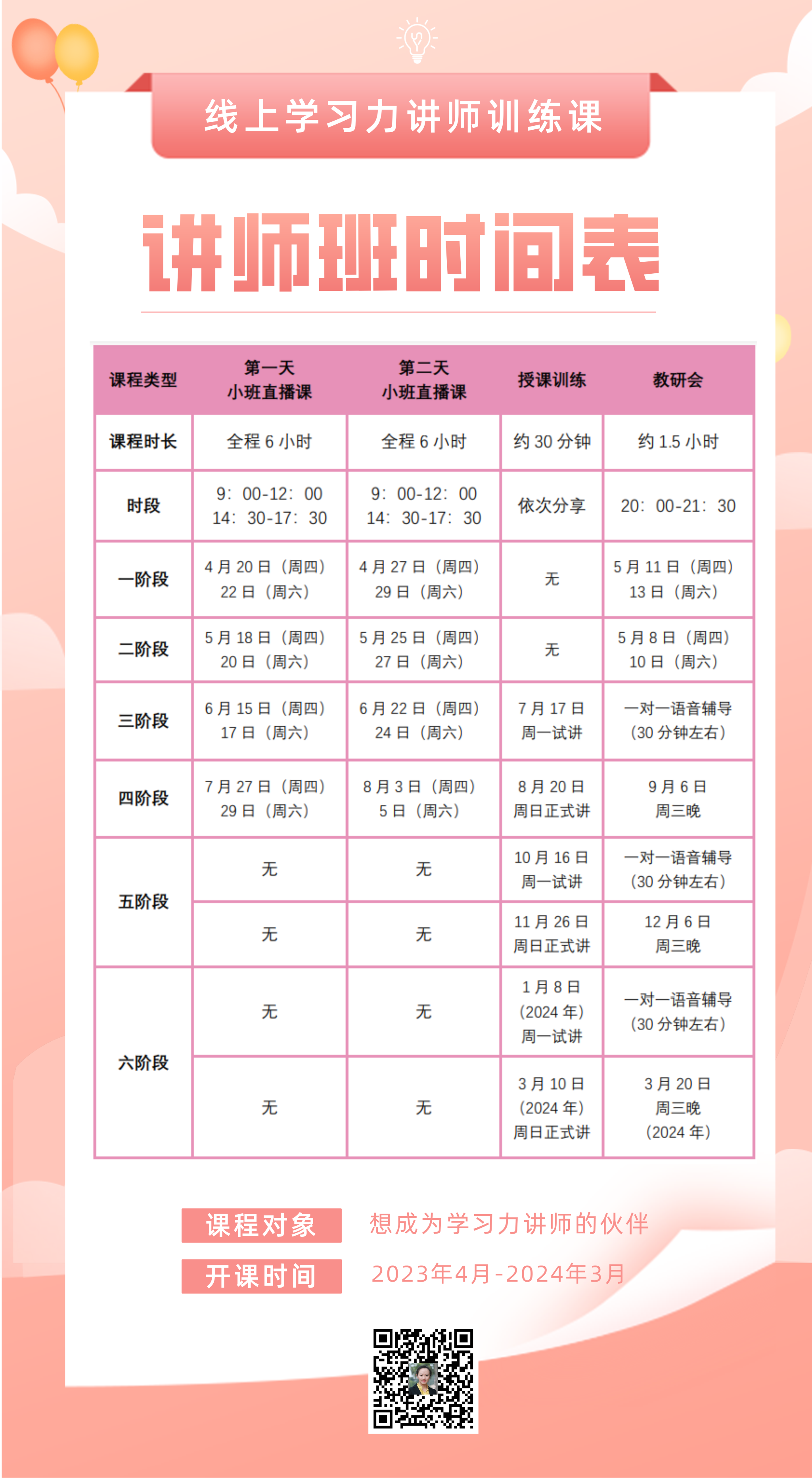 为此,从2020年9月开始,我们启动了线上管理师+讲师培养计划。旨在通过便捷的线上小班直播教学,帮助更多的伙伴快速成长,并不断累积讲师能力。